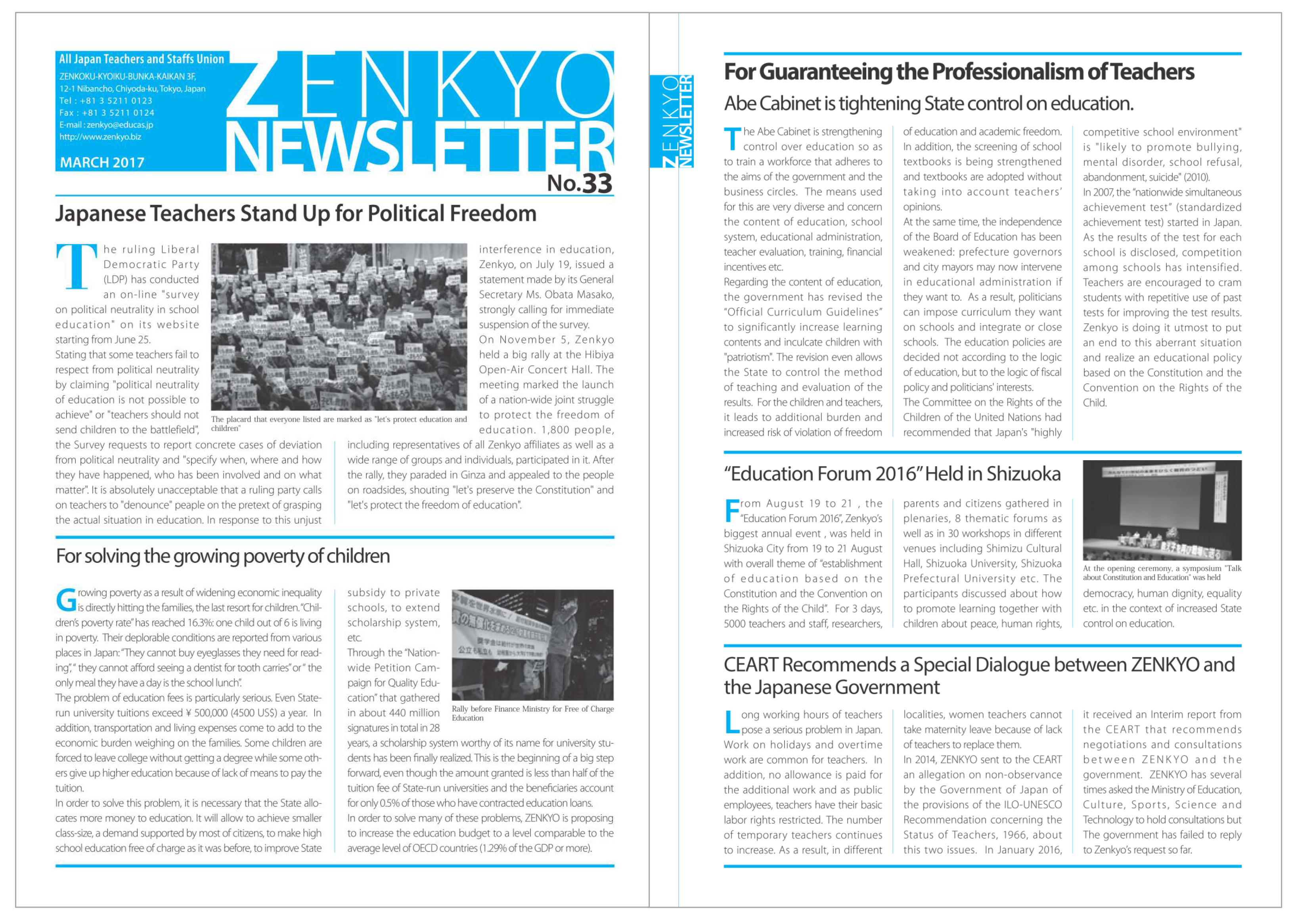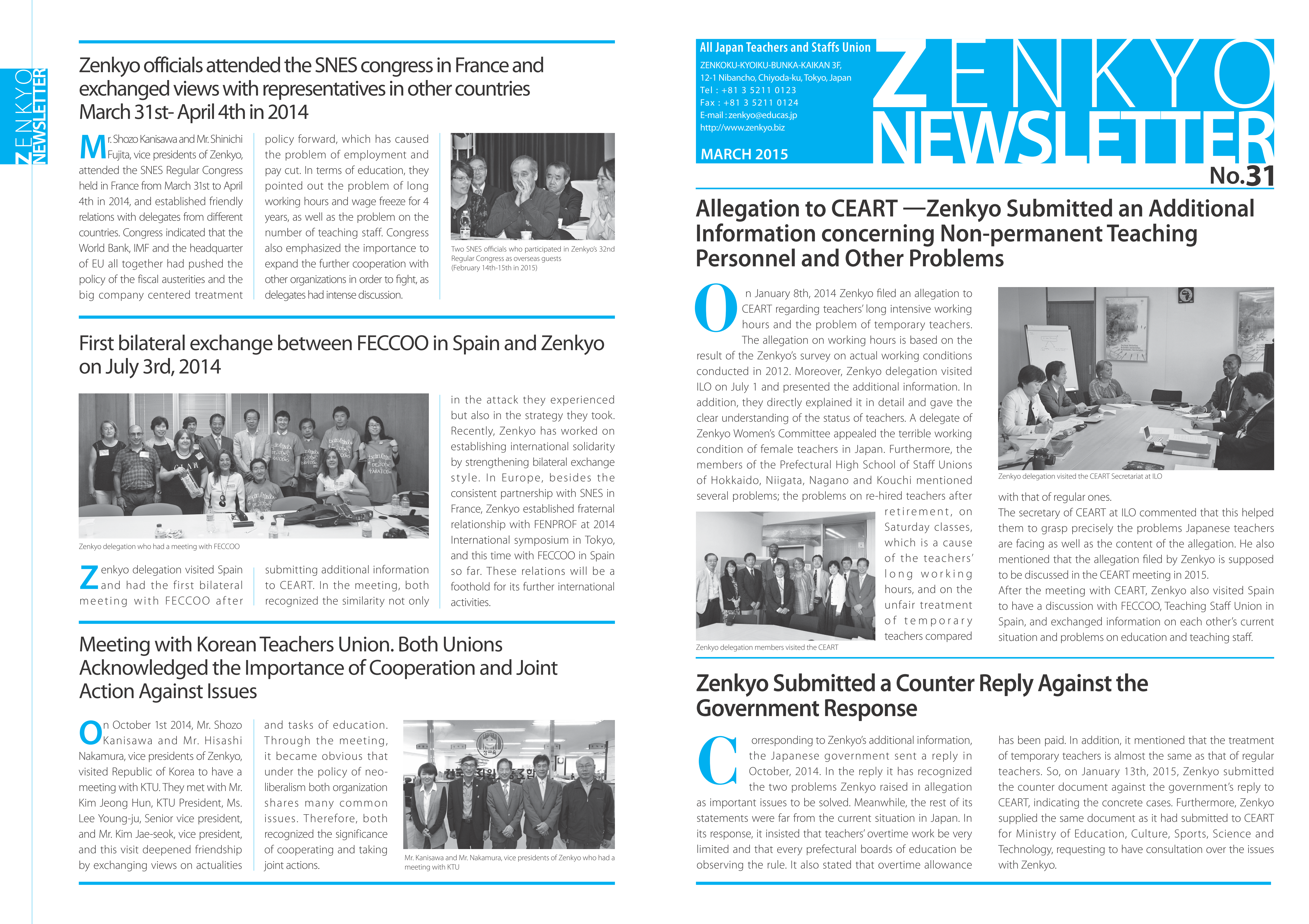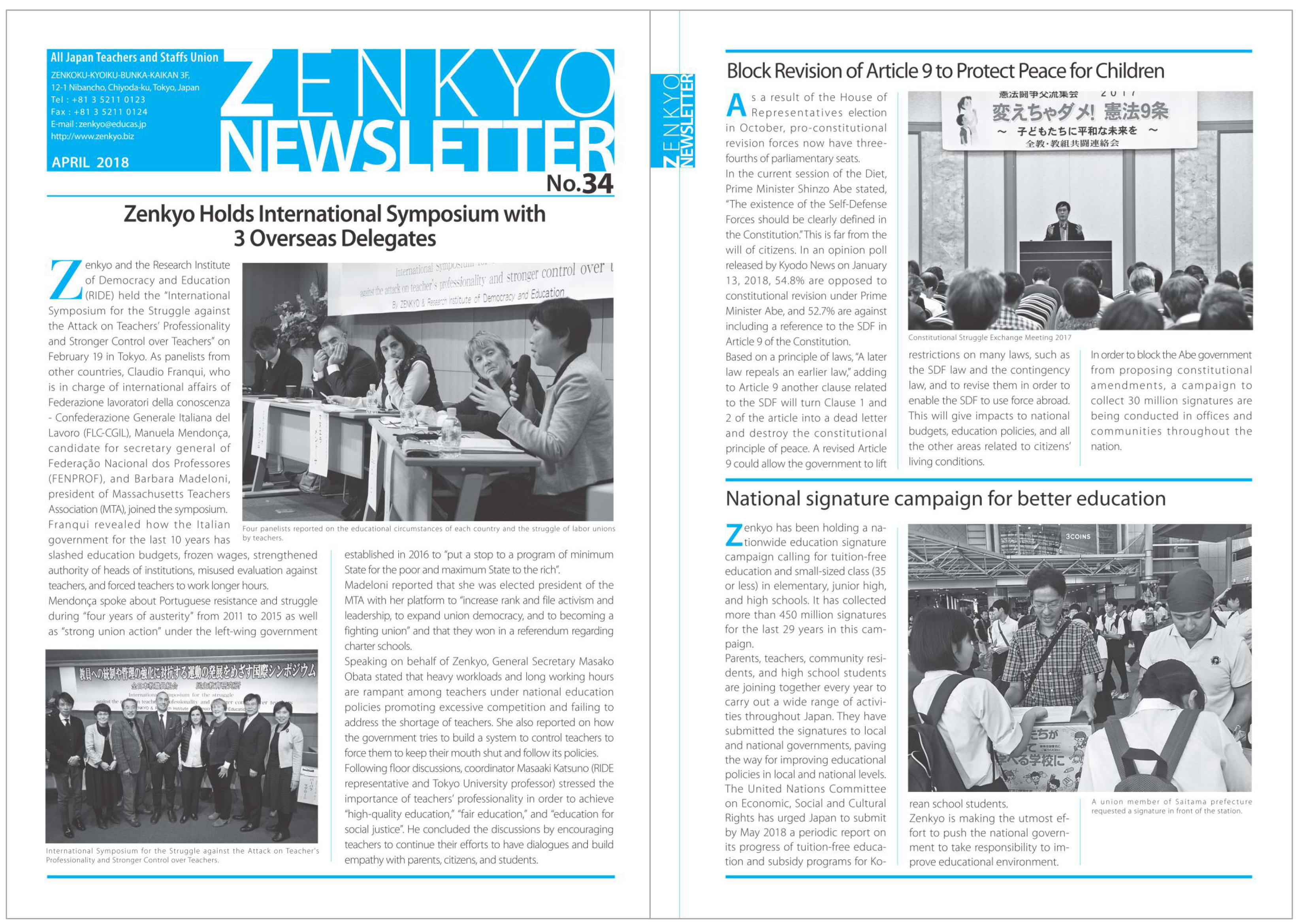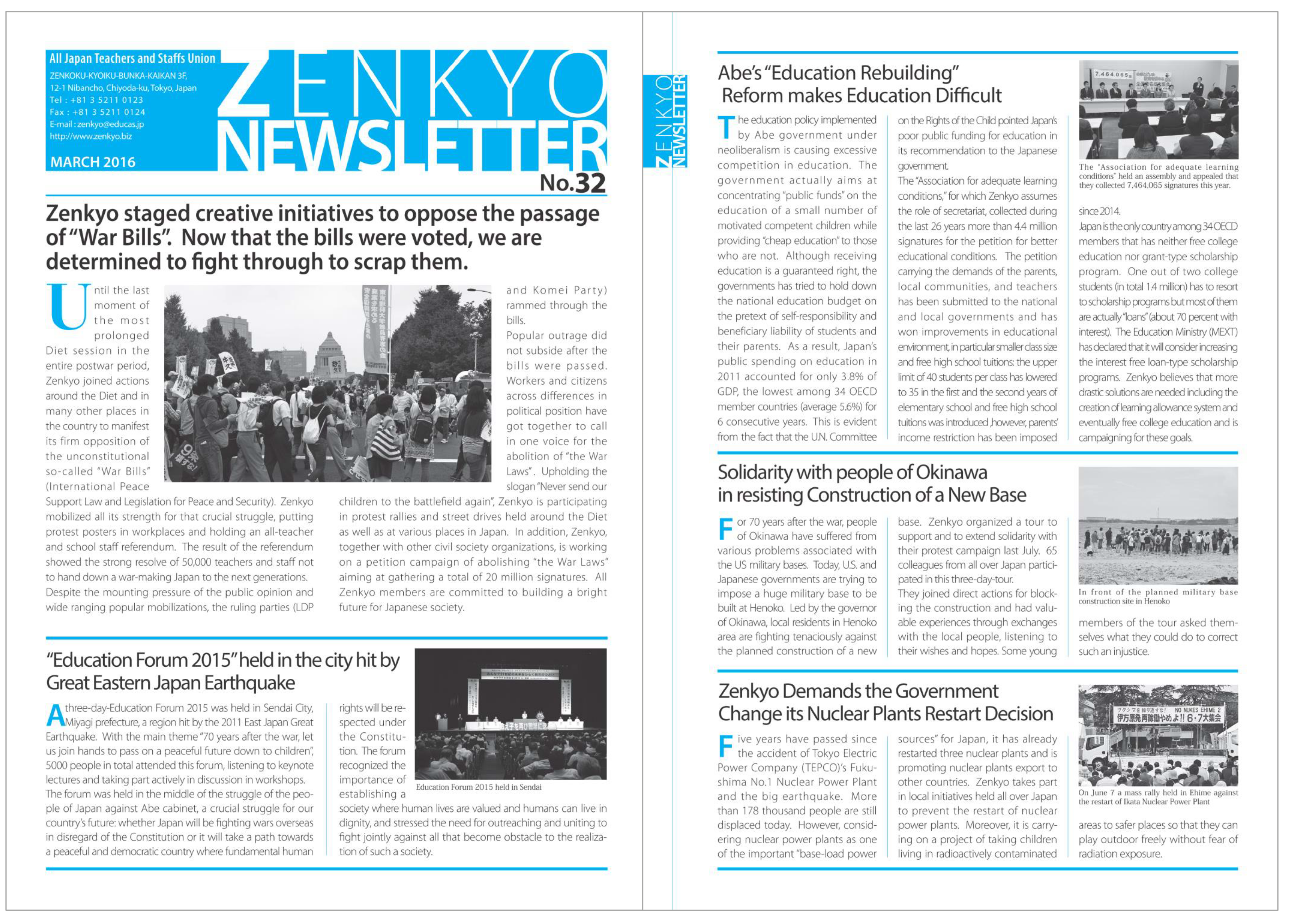 All Japan Teachers and Staffs Union (ZENKYO) published “ZENKYO NEWSLETTER No.41”on March 14. It is w…