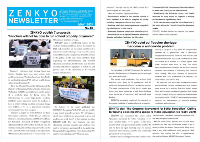 All Japan Teachers and Staffs Union (ZENKYO) has published “ZENKYO News Letter No.40”. It is written about ZENKYO’s activities and efforts in 2023.