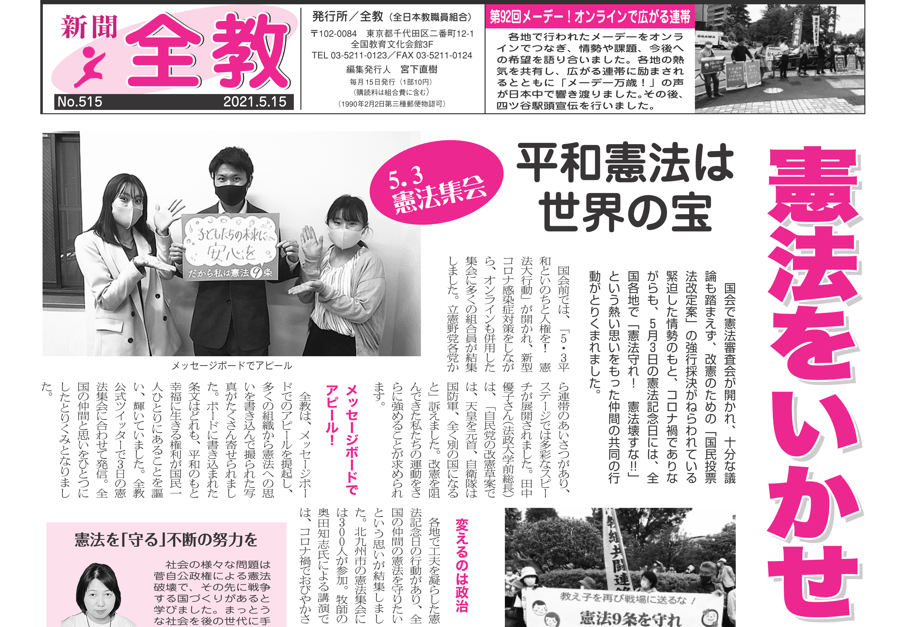 全教実習教員部NEWS第122号を発行しました。 昨年度の全国学習交流集会は、新型コロナウイルス感染拡大により中止としましたが、この間、全国の皆さんから『来年は会いたいね』『ぜひ顔を見て話したい』『な…