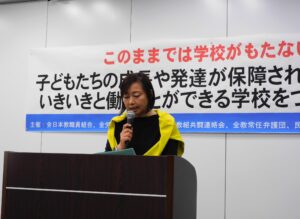 全教・教組共闘連絡会は、10月7日、全労連・新婦人の会など7つの団体に主催を呼びかけ、全国集会「このままでは学校がもたない!子どもたちの成長や発達が保障され、せんせいがいきいきと働くことができる学校をつくるために」を開催しました。現地参加が190人、オンラインを含め300人近くの参加で成功させることができました。