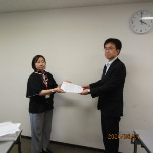 まず、要求書の手交に続き、中教審審議まとめに対する全国から寄せられた職場団体決議と現場の教職員の意見を提出しました。冒頭、金井中央執行副委員長から、来年度予算において、少人数学級の推進、教育無償化、教職員未配置および教職員の長時間過密労働の解消のため、十分な教育予算の確保を求めるとともに、対応レベルの検討と十分な交渉時間の確保について強く要望しました。また昨年度の全教のILO/ユネスコの共同専門家委員会(CEART)に申し立てに対する文科省の見解を受けて、5月に全教が意見をCEARTに提出したことを述べ、これに対する文科省の見解をCEARTに届けるよう誠実な対応を求めました。