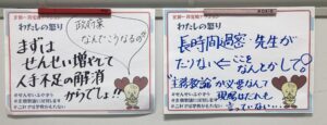 ・定時での退勤が困難な職場でも、机上に三角柱を置く、メッセージボードへの書き込みを呼びかけ、SNSに投稿する。