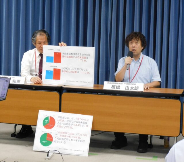 7月17日(木)、「教育に穴があく(教職員未配置)」実態調査結果(5月)について記者発表を行いました。