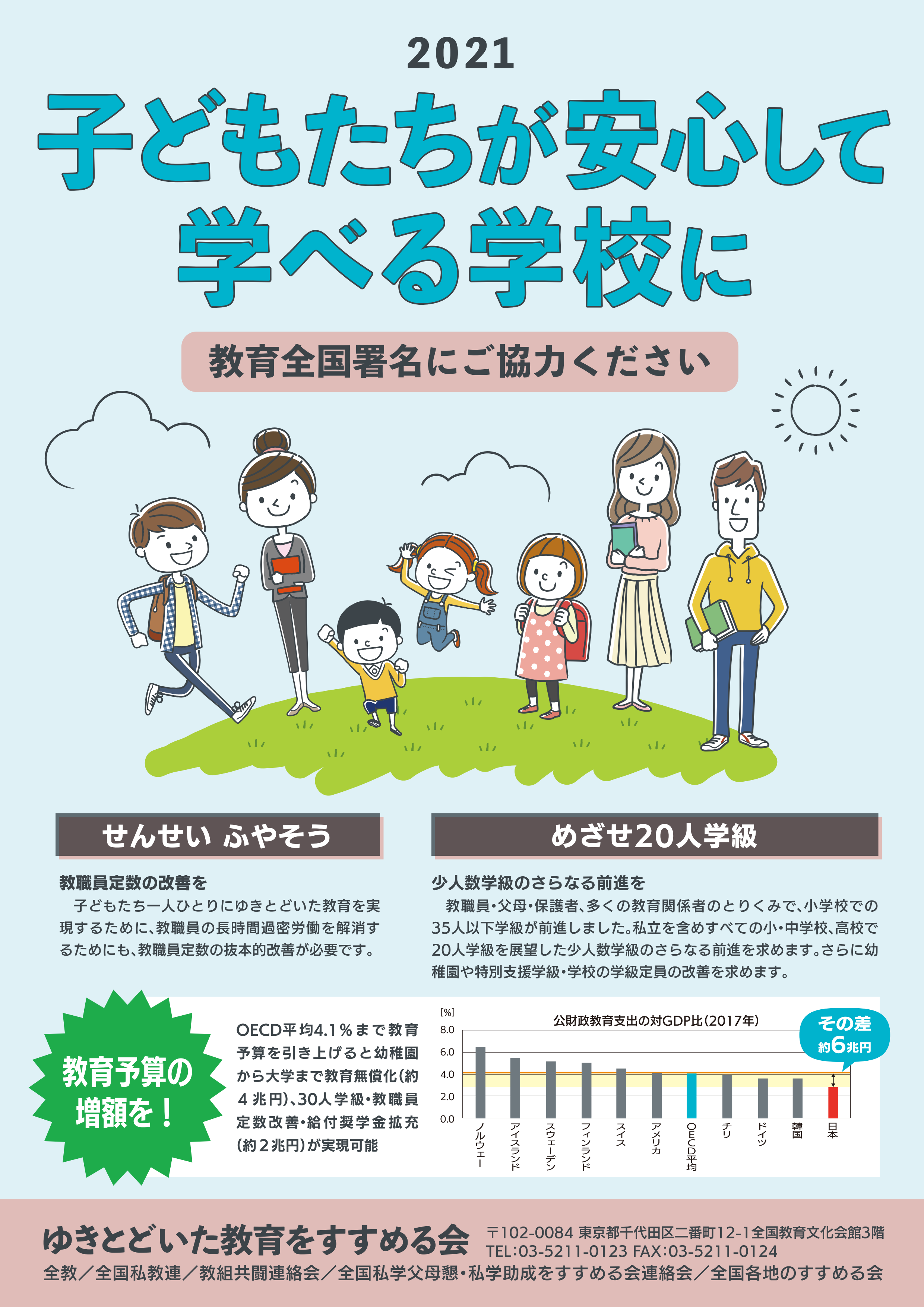 33年目となる2021年度教育全国署名スタート集会が、7月9日、星陵会館と全国各地をオンラインでつないで開催され、全国各地から多くの参加がありました。