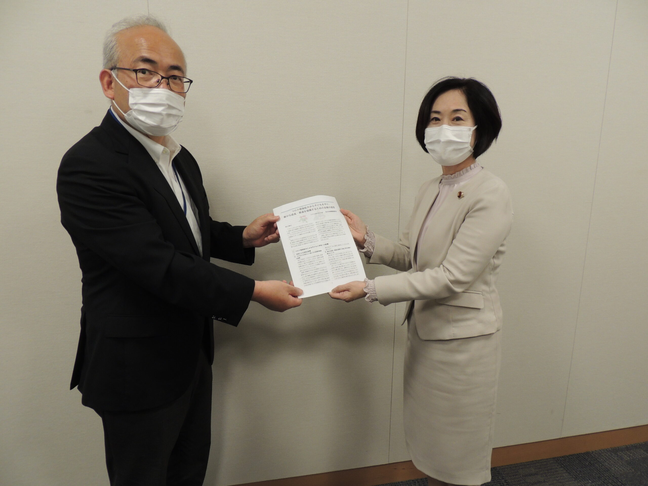 全教は、6月8日、日本共産党の衆院議員畑野君枝さんと、「全教の提言」について説明し懇談しました。全教より、宮下直樹中央執行副委員長、佐竹葉子中央執行委員が参加しました。