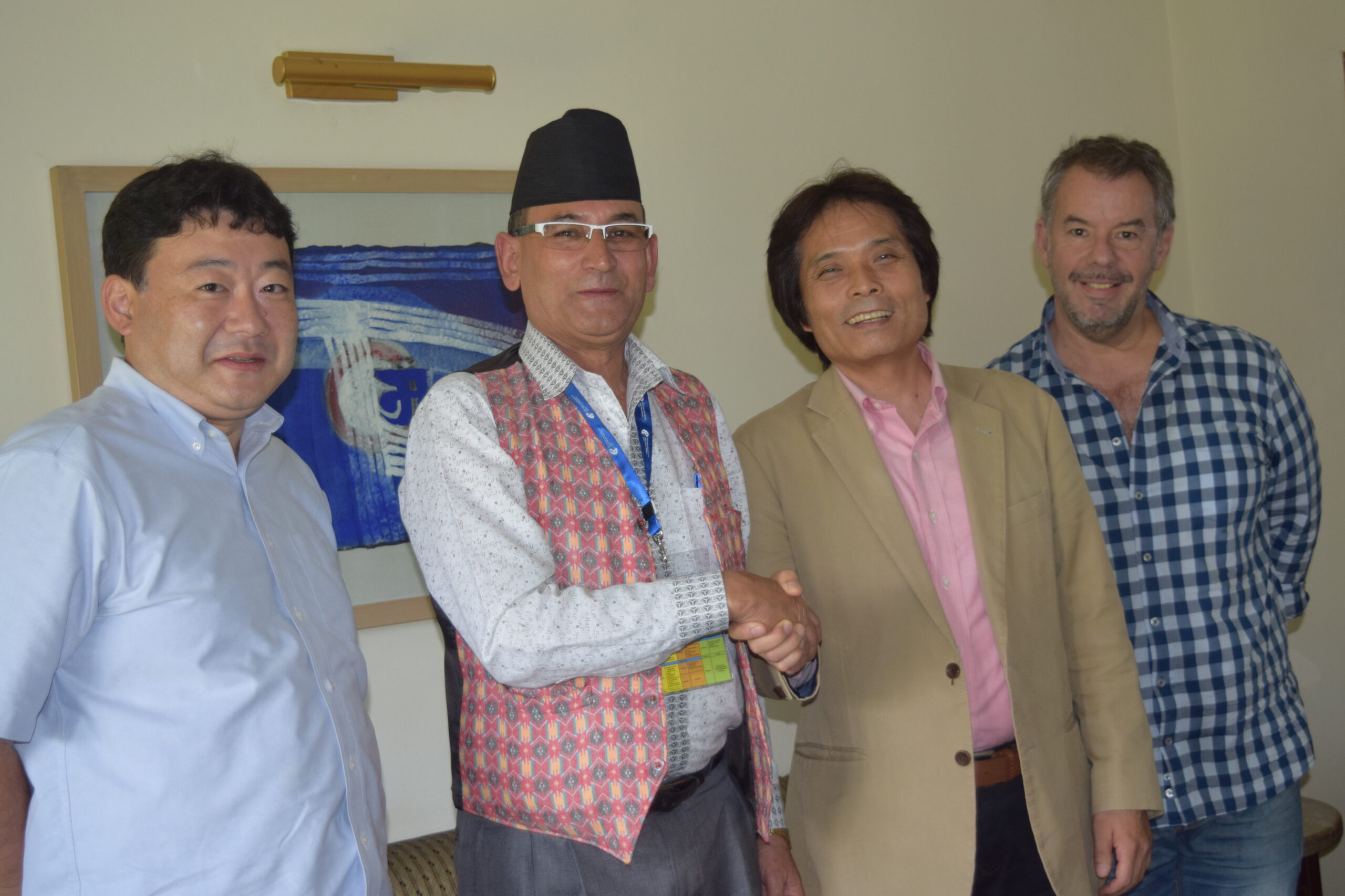 また、ネパールの労働組合のナショナルセンターであるGEFONT委員長をはじめとした役員と懇談しました。さらに、教職員組合NNTAの委員長、書記長との会談も行われ、お互いの国の教育の状況や教職員組合の活動などについて交流しました。