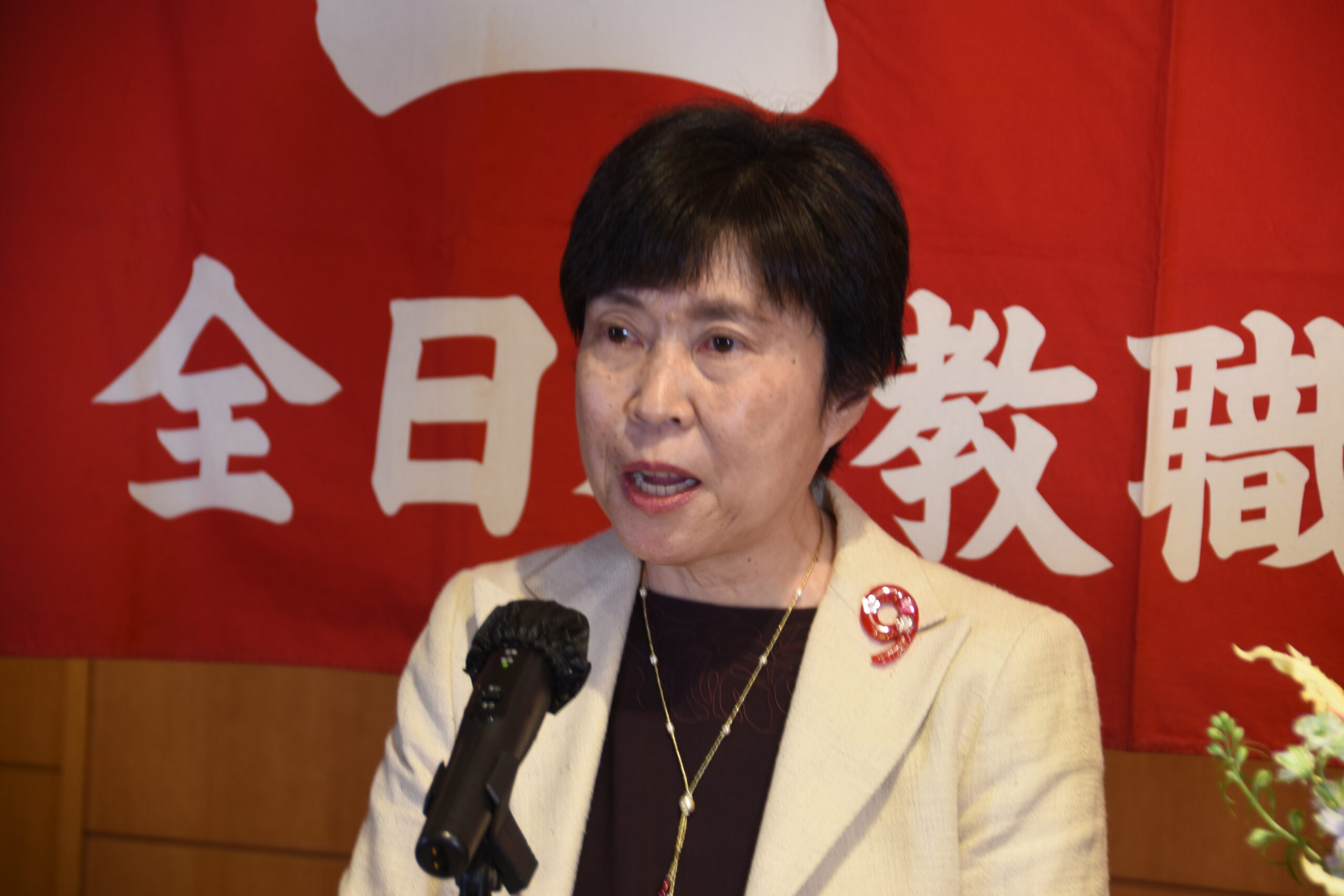 大会の冒頭で小畑雅子中央執行委員長は、全教結成30年を迎える今回の定期大会で、コロナウイルス感染拡大というかつてない状況のなかですすめてきた全教運動の教訓を汲みつくし、新たな発展へと向かおうと大会の意義を述べました。政府が「令和の日本型教育」と称して、政府や財界にとって使い勝手の良い人材づくりをめざす「教育再生」をすすめようとしているのに対して、コロナ禍の中で生きる子どもたちにていねいに寄り添い、子どもの実態から始まる教育課程づくりと参加と共同の学校づくりが求めれていると強調しました。そして、少人数学級の前進と特別支援学校の設置基準の策定の具体化は、全教が職場と地域を基礎に、教育全国署名のとりくみや教育基本法闘争で培ってきた幅広い共同という全教運動の真価が最大限発揮されたものであることに確信を持って、コロナ禍の中でいのちとくらし、人権を大切にする社会を実現するという切実な要求を高く掲げ、声を上げ続けようと呼びかけました。
