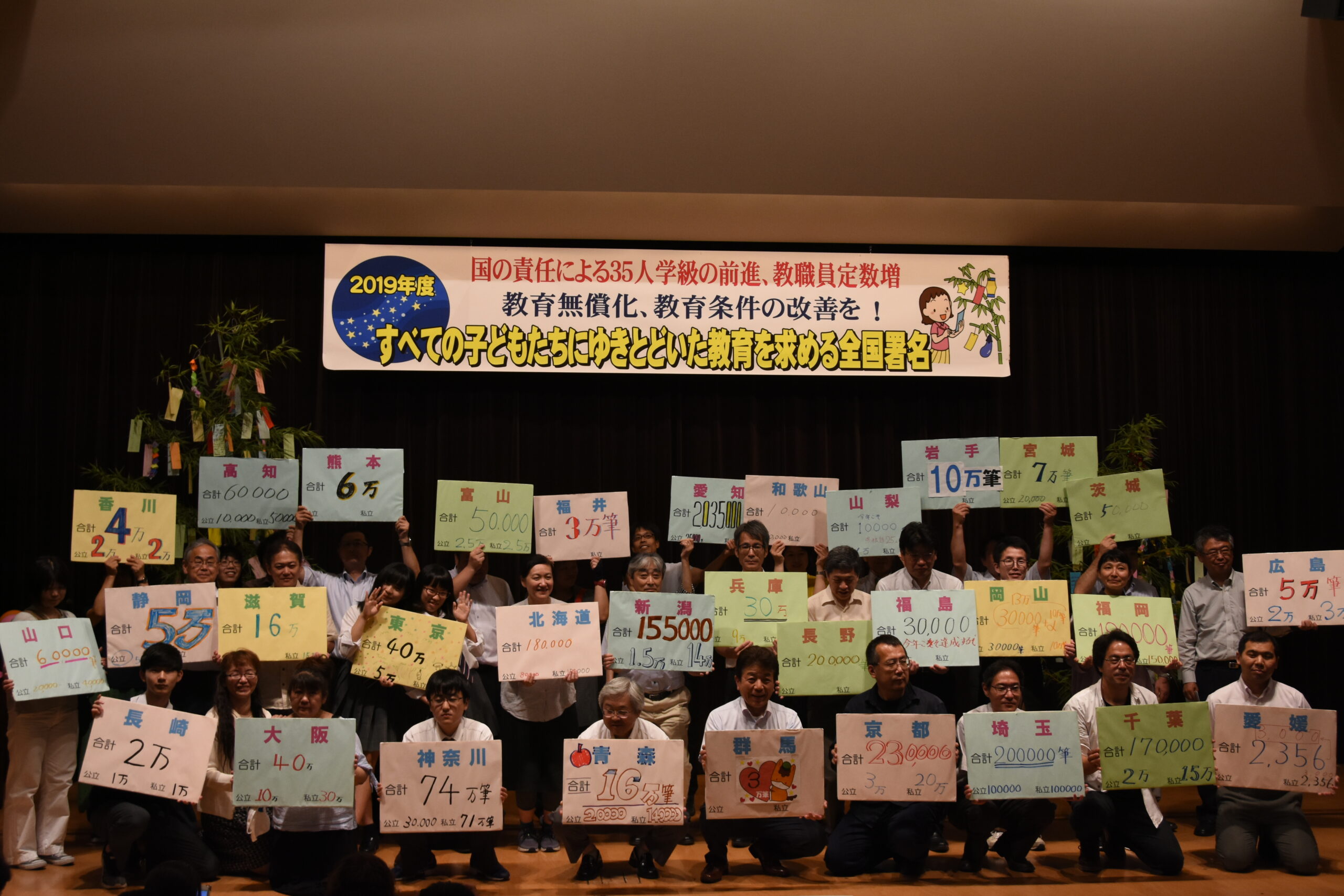 東京・星陵会館で7月5日、2019年度教育全国署名スタート集会が行われました。
