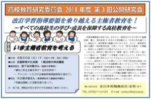 学習指導要領が改訂され、4月から「高校生のための学びの基礎診断」導入、現在高校1年生の大学受験から「大学入学共通テスト」実施など、高校教育は激動の中にあります。さらに、教育再生実行会議が「高校教育改革」を押しつける「第11次提言」を準備し、政治による教育介入が強められるようとしています。