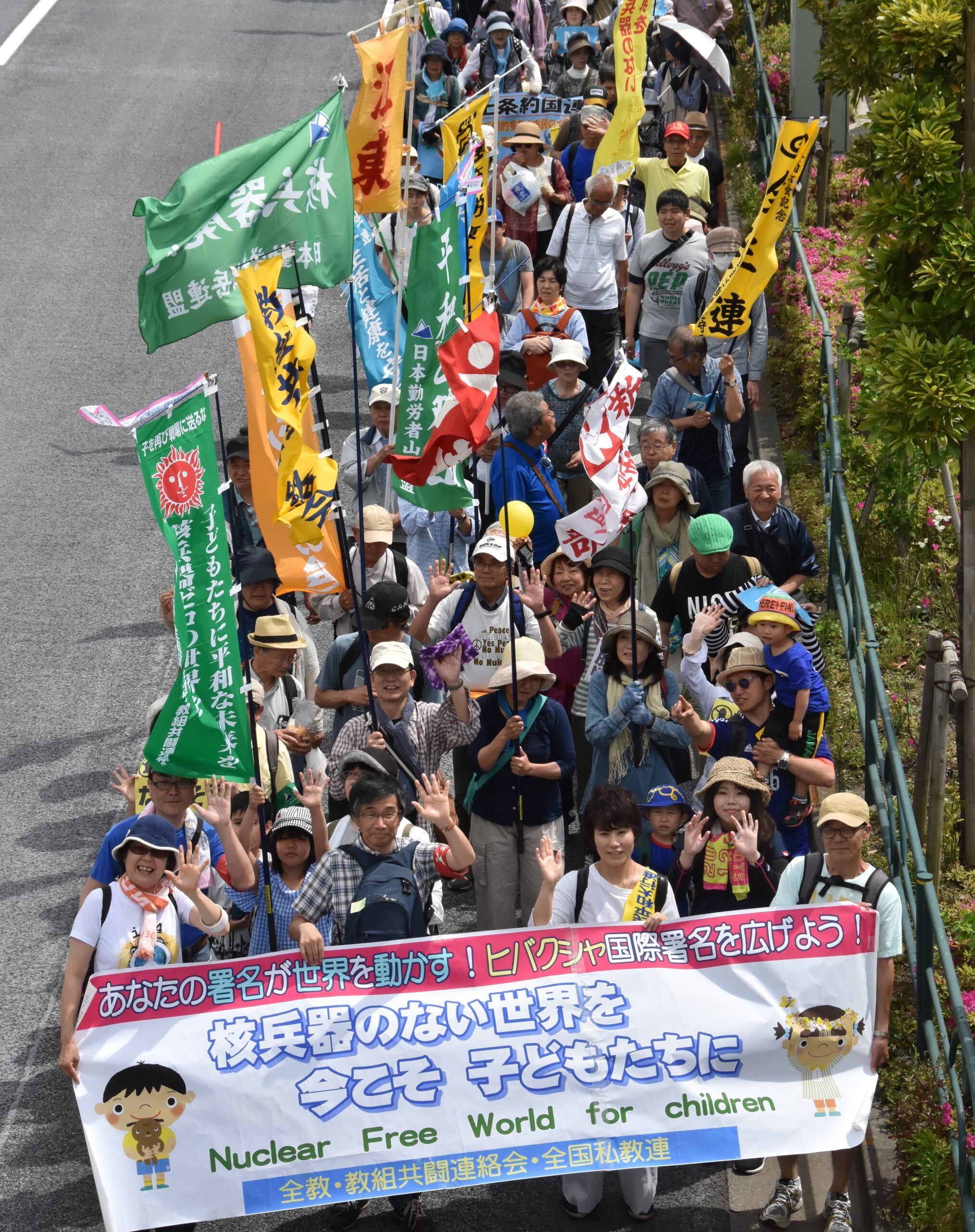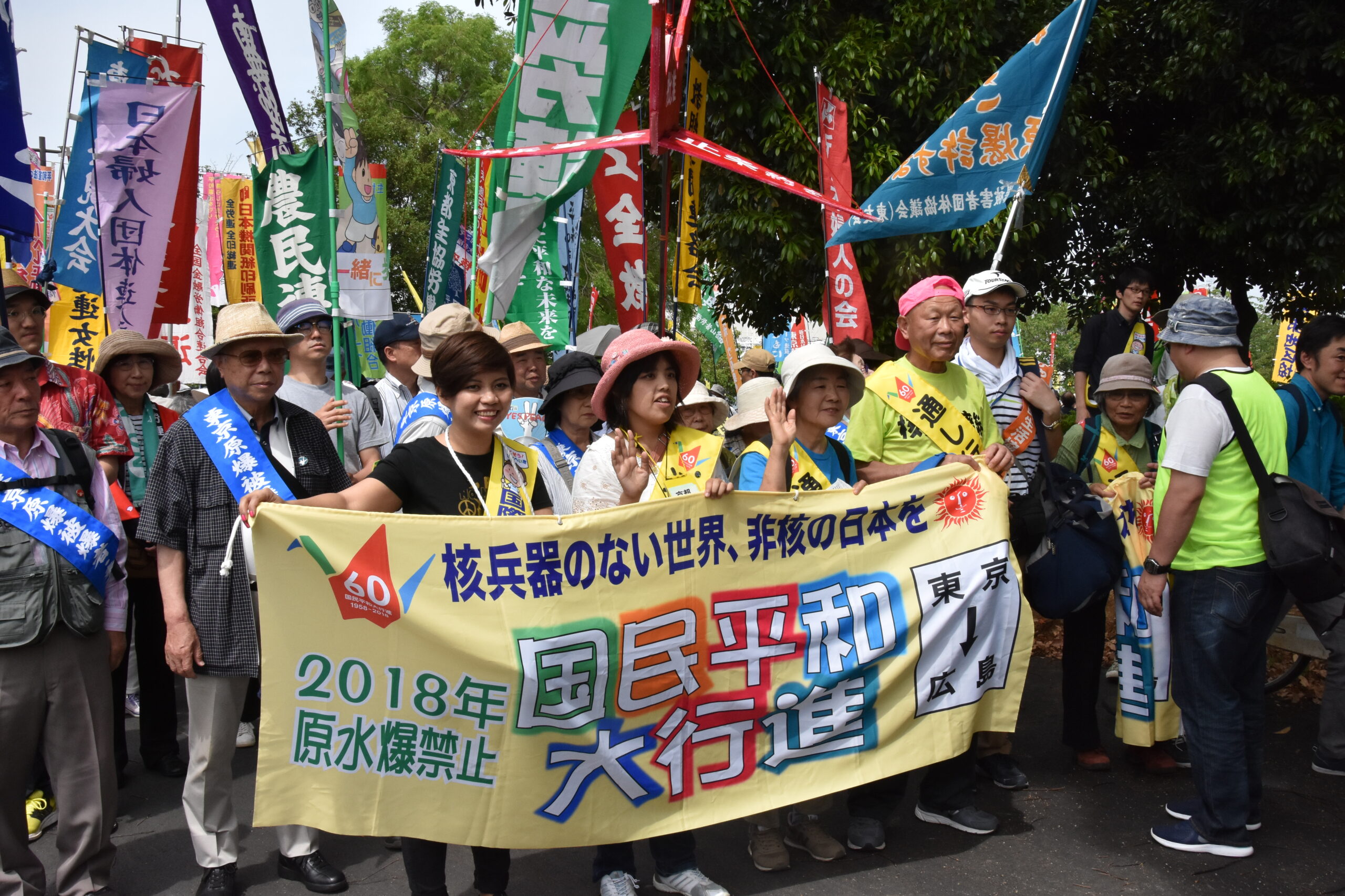 5月6日、60回目となる国民平和大行進が、東京・夢の島の第五福竜丸展示館前から出発しました。行進は、核兵器のない平和で公平な世界の実現を、沿道や通過する自治体などに呼びかけながら、被爆地広島をめざします。