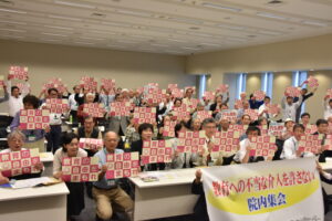 集会では、中嶋哲彦さん(名古屋大学)が「開き直りは許さない:調査権の濫用と不当な支配」と題して講演しました。中嶋さんは、「文科省が、政治家の求めに応じて、前川氏の授業内容等について調査したことは、地方教育行政法に定める調査権の濫用であり、教育基本法が禁じる不当な支配にあたる」として、今回の文科省の「調査」の不当性を明らかにしました。その上で、中嶋さんは、「今、目の前で起きている憲法に反する事実を見逃さず、現場レベルで、草の根の反撃を組織していくこと」の重要性を指摘しました。「憲法を守るための最もいい方法は、憲法実践をすること。学校、地域、家庭で憲法を生かす憲法実践をしていこう」との中嶋さんの呼びかけを、参加者全体で共有しました。