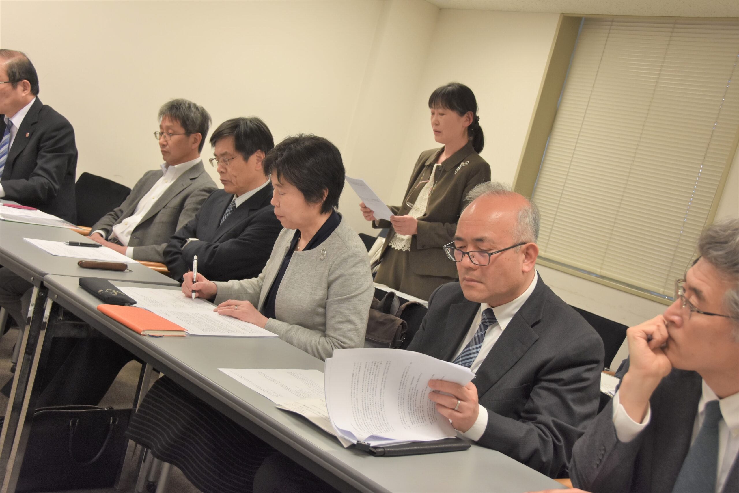 国際人権規約留保撤回を踏まえた、中等・高等教育段階の「無償教育の漸進的導入」をすすめる計画を策定し、国連から求められている「無償教育の具体的行動計画」を教職員組合などの意見を反映させたものとするという要求に対し、文科省は「条約締結国の義務として中等・高等教育無償前進のための計画をつくれということが求められているわけではなく、現段階でそういう計画を作ることは考えていない。しかし、家庭の経済的な事情に左右されることなく希望する質の高い教育を受けることができることは大変重要。昨年12月に閣議決定された経済政策パッケージにおいても、高等教育の無償化、授業料免除、給付型奨学金拡大、年収950万円以下世帯の私立高校授業料の実質無償化など、消費税の税率をあげることを前提に2020年度に向けて実施していくことが示されている」と答えました。全教宮下書記次長は「所得による制限があることで、生徒を選別せざるを得ない実態がある。すべての子どもたちに経済状況に左右されず学ぶことを保障する制度を確立すべき」「5月末までに国連社会権規約委員会から『無償教育の具体的行動計画』提出が求められている中で、教育の当事者である教職員団体との協議は政策判断において必須条件だ」と述べました。