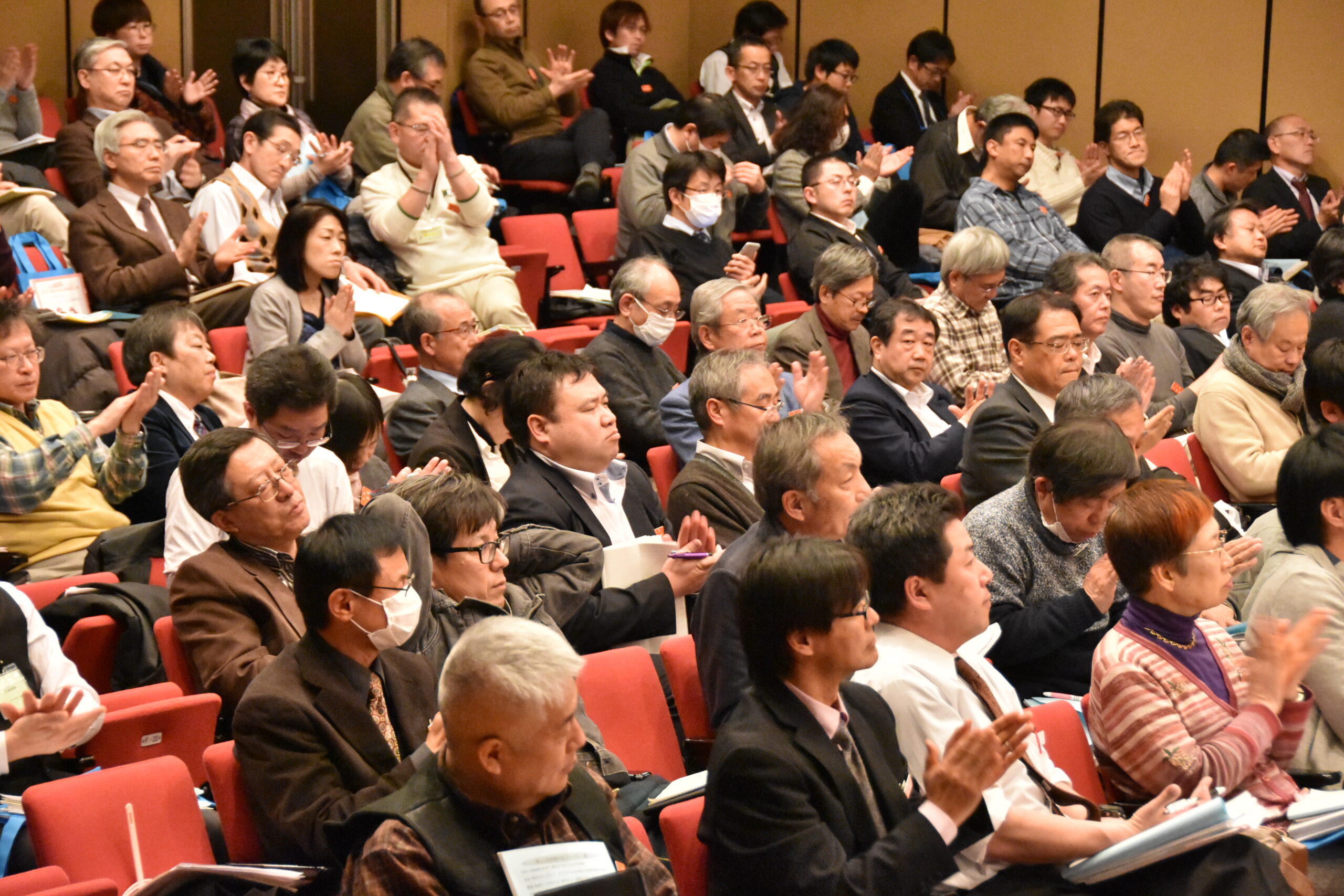 大会の冒頭、中村尚史中央執行委員長は、「安倍『教育再生』によって、教育そのものが政権の思惑を達成するための道具にされようとしている今こそ、教育では子どもが一番、子どものことを決めるのは父母・保護者国民との立場で参加と共同の学校づくりを草の根からすすめよう」と呼びかけました。その上で、「子どもと教育を守るためにも憲法9条改憲を許すことはできない」として、「職場・地域から安倍9条改憲ノーのゆるぎない多数派をつくりだしていこう」と訴えました。