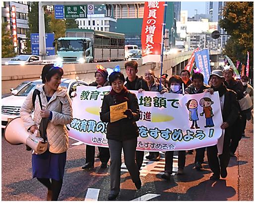 この日、「ゆきとどいた教育をすすめる会」は、教育全国署名集約の1日行動をおこないました。