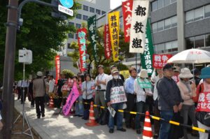 安倍政権は同日午後、「戦争法制」の閣議決定を強行しました。全教は、日本を「戦争する国」に転換させてしまう「戦争法制」の閣議決定に怒りをもって抗議するとともに(声明参照)、「戦争法制」の成立阻止に向けて全力をつくします。
