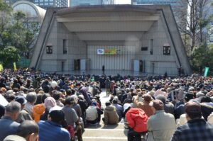 午後1時からおこなわれた日比谷野外音楽堂集会は参加者があふれ、早々に入場が制限されました。会場に入れなかった参加者は、会場外のスピーカーで訴えを聞きました。集会では、福島の被災者や原発立地県の代表者、音楽家の坂本龍一さんらが「原発ゼロ」への熱い思いを発言しました。