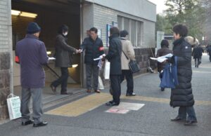 宣伝では、全教の北村佳久委員長・全労連公務部会代表委員が弁士を務め、今年の春闘にあたっての3つの課題「①大幅賃上げの実現、②憲法改悪ストップ、③安倍政権による雇用と暮らしを破壊する暴走政治は許さない」にふれ、「全労連・国民春闘共闘委員会は、この、賃上げ、憲法、雇用・くらしの3つを中心的な課題にかかげて、今年の春闘をたたかいます」と力強く訴えました。また、加門憲文日高教委員長、国公労連や自治労連の代表が弁士を務め、それぞれの立場から春闘での要求前進を訴えました。