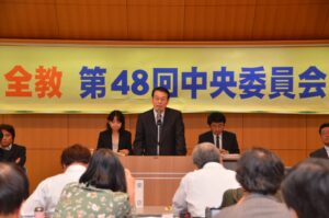 臨時国会が開会され、安倍自公政権の暴走と、憲法をめぐるたたかいが重要課題の情勢の中、全教は10月17日・18日、第48回中央委員会を開催しました。