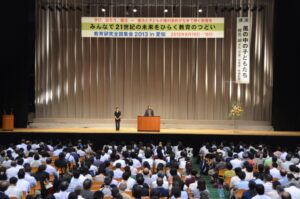 「教育のつどい2013in愛知」は、8月17日から3日間、名古屋市で開催され、全国から教職員、保護者、子ども、市民など、のべ6000人以上が参加し、全体集会、8つの教育フォーラム、30の分科会で、「憲法と子どもの権利条約の視点で子どもと教育を語ろう!」と、熱い討論と交流が行われました。