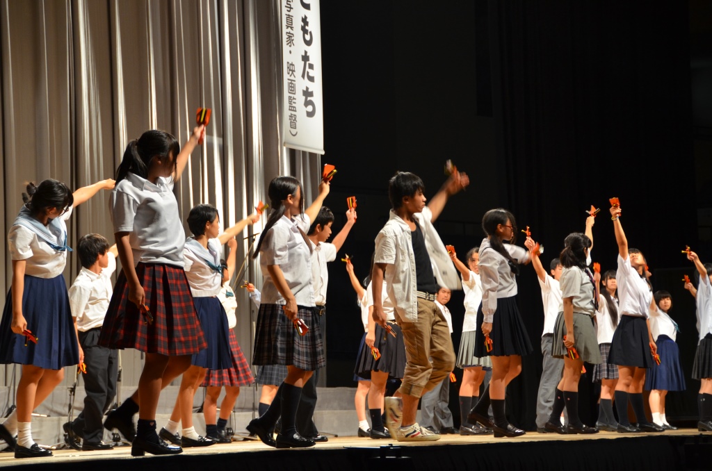 初日の開会全体集会では、現地企画の高校生による「群舞」と合唱構成「ぞうれっしゃがやってきた」のあと、作家・エッセイスト・写真家・映画監督の椎名誠さんによる記念講演が行われました。