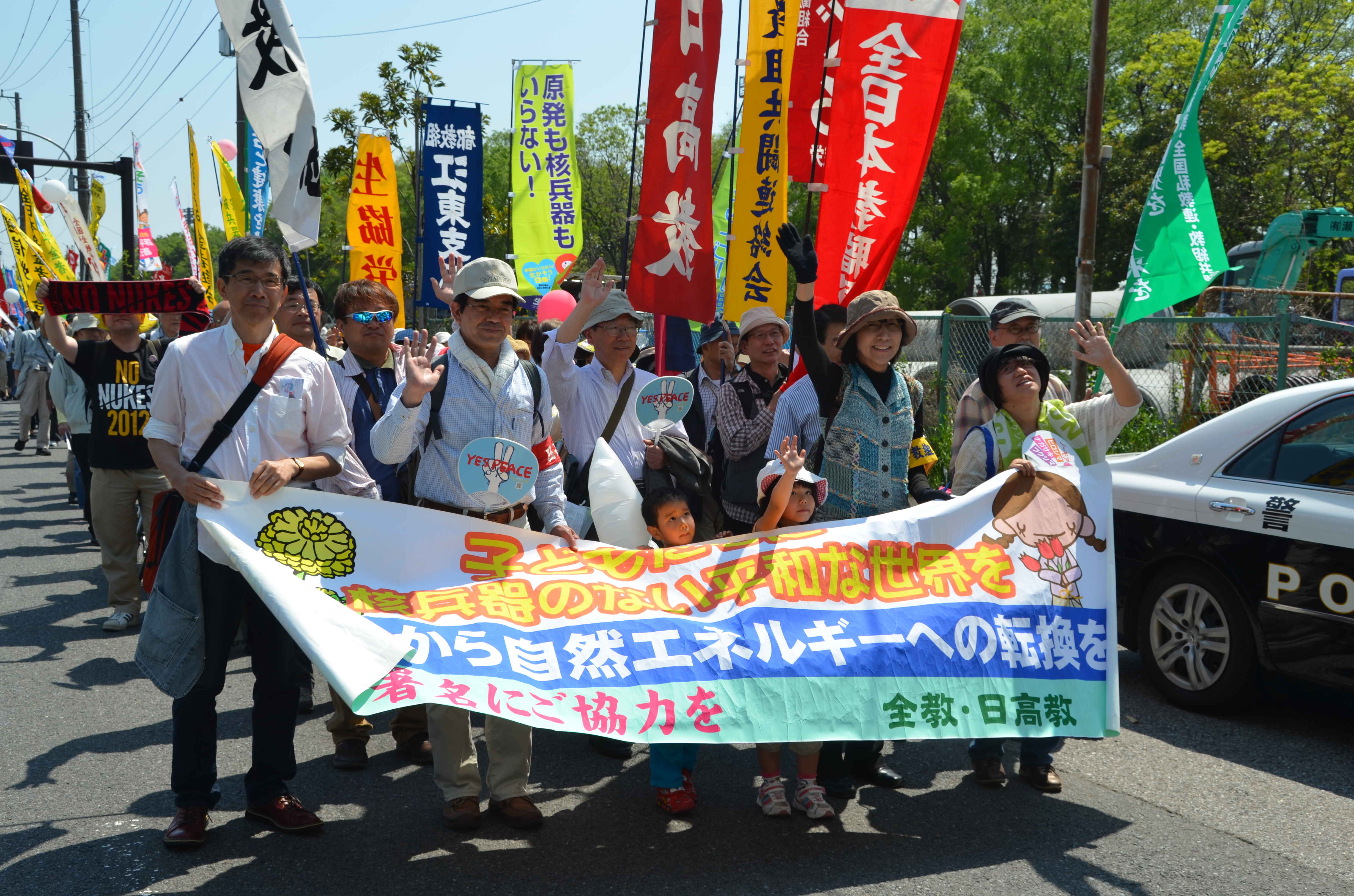 「核兵器のない世界、憲法9条と非核三原則の輝く日本へ」をスローガンに「原水爆禁止国民平和大行進2013」(東京―広島コース)が6日、東京都江東区の夢の島から出発しました。