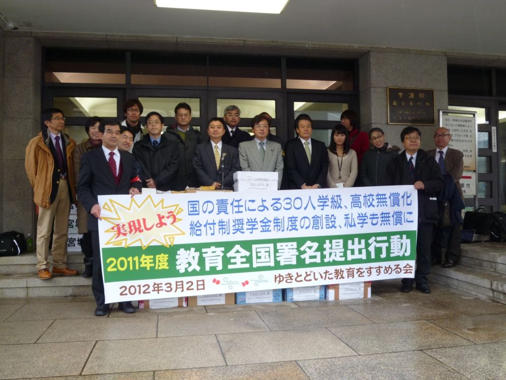 3月2日、ゆきとどいた教育をすすめる会は、2011年度ゆきとどいた教育を求める全国署名を国会に提出しました。