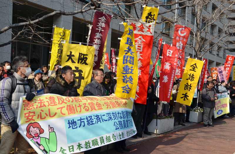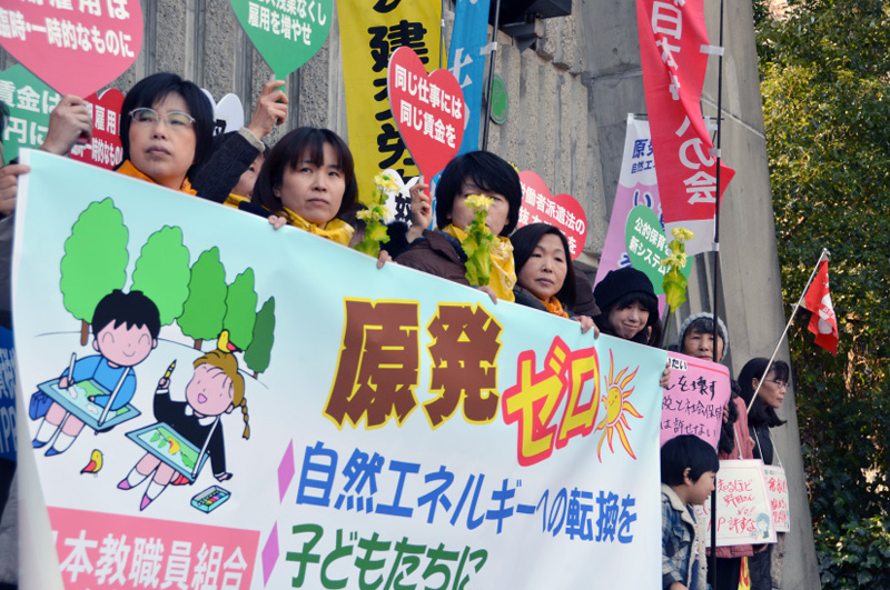 全国民的な要求とともに、公務員総人件費削減反対、労働基本権回復などの公務労働者みずからの課題をかかげて、「12春闘要求実現2.10中央総行動」が都内で行われ、全国から7000人、全教の組織からは150人が参加しました。