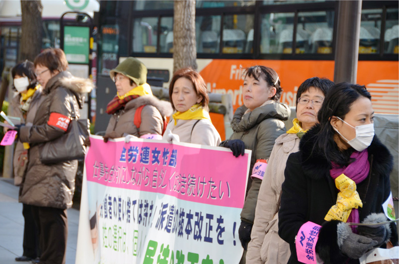全労連女性部は、この日を「菜の花行動」として位置づけてとりくみ、全教女性部からも50人が参加しました。