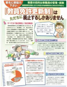 「教員免許更新制をただちに廃止すること」の1点を求める署名に、すべての教員の声を集めましょう。