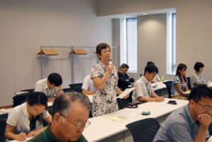 懇談会では、北村委員長が主催者を代表して挨拶し、今谷書記長が「高校無償化」と「見直し」の経過を説明しました。