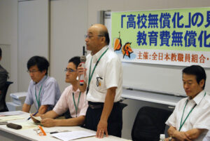 新内閣のもとで臨時国会が招集された緊迫した情勢の中で、9月14日、全教・日高教・教組共闘が主催して「『高校無償化』の見直しに反対し、教育費無償化の拡充を求める懇談会」が衆議院第2議員会館で開催され、様々な団体から100名が参加しました。