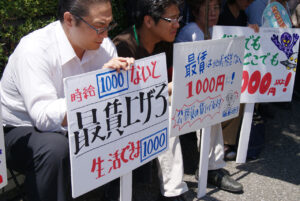 参加者から募った「最賃川柳」の優秀賞に、全教米田中央執行委員の「最賃で 暮らせりゃ生まれぬ ワーキングプア」「家さえも 借りれぬ最賃 意味不明」が選ばれました。