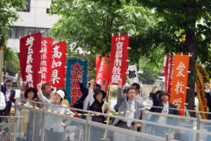 終結集会の決意表明では、全教を代表して高知県教組の畑山書記長が「すべての職場で決議をあげるとりくみを展開した。怒りのひと言を書き入れる時間すらない超多忙な教育現場で、せめて職場名だけでも書いて送ろうという分会もあった。地方への波及を阻止していきたい」と述べました。集会最後に行動提起に立った全教蟹沢書記次長は「被災地で奮闘している被災者と公務の仲間に心を寄せよう」とした後、次の3つの提起を行いました。「今回の政府の暴挙を国民に伝えるために、地域での宣伝行動に決起しよう」「首相官邸への抗議を集中しよう」「来週から国会の委員会傍聴、議員要請、議面集会などを展開するとともに、地元の国会議員に膝詰めの要請行動を展開しよう」