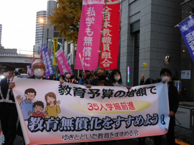 「ゆきとどいた教育をすすめる会」は12月10日、東京都内で、2021年度教育全国署名集約集会を開催しました。「教育予算を大幅に増やして、20人学級を展望した少人数学級の前進、教育無償化を実現させよう」など要求をかかげ、この日までに集約した署名数は235万3875筆となりました。特別報告では教員から「不登校になる子どもたちが増えている。教職員を増やして、少人数学級をすすめ、子どもたちに寄り添いゆっくり話を聞くなど丁寧にかかわることが今こそ大切だ」、高校生からは「公立私立関係なく、自分たちの通いたい学校に経済的な壁がなく通いたい」など、訴えがありました。別の高校生からは私学助成運動を広げるとともに地域の商店街を盛り上げるために作成したダンス動画の紹介などが行われました。これまで33年間に集約した署名は、今回の235万3875筆を加え、4億7000万筆を超えました。この力をさらに大きくして、2月の提出行動に向け、とりくみをさらに推進していこうと、アピールが採択されました。