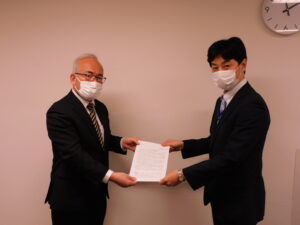 春闘要求書の手交に続き、宮下中央執行委員長が、子どもたちにもコロナ感染症が拡大するなか、検査体制の拡充をはじめこれまで以上に国の責任で感染拡大防止対策を徹底することと、深刻な教員不足解消のためには長時間過密労働の解消が緊急の課題であり、そのためにも教職員定数増と全国学力テスト悉皆実施などの競争主義的な教育政策の転換を求めました。