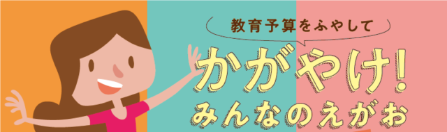 めざせ20人学級!教職員の大幅増員! 教育無償化!