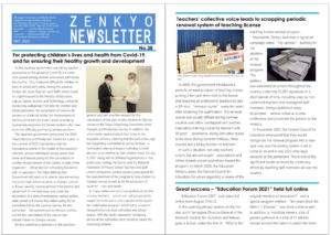 ZENKO NEWS LETTERは、主に諸外国の教職員組合を対象とし、1年間の全教運動について、発表しているものです。日本語版PDFも添付しますので、ぜひ併せてご覧ください。