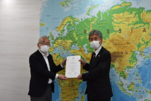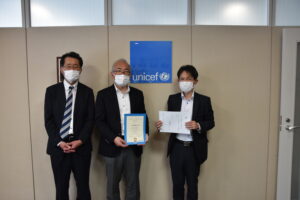 5月26日。全教が提起し、全国の職場・分会や各教組がとりくみ集約したウクライナの市民への人道支援カンパ165万3250円(5月9日までの集約分)を、日本ユニセフ協会、国連UNHCR協会駐日事務所(国連難民高等弁務官事務所)へ届けました。