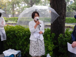 その後、中村雅子さん(民主教育研究所・子ども全国センター)、池田亮子さん(新日本婦人の会)、鈴木敏夫さん(子どもと教科書全国ネット21)、斎藤園生さん(全教常任弁護団)、黒澤幸一さん(全労連)のリレートークをおこないました。それぞれの分野から、「子どもに弔意を押しつけることになる」「法的根拠はまったくない」「安倍政治を美化し、子どもたちに安倍元首相がすばらしい政治家と教え込むことになる」などと語られました。