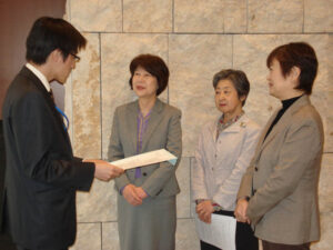 さらに、公立高校授業料の無償化や私立高校生への就学支援金制度などを歓迎するとともに、子どもたちはなお就学困難な実態にあることを踏まえ、準要保護家庭の就学援助に対する国庫負担の復活、小中学校の副教材費、給食費や高校の教科書、実験実習費、修学旅行費など、教育に必要な諸費用を公費負担にし、保護者負担の軽減をはかることなどを求めました。また、私立高校生への就学支援金の対象枠の拡大、高校・大学生に対する給付制の奨学金制度の創設を求めました。
