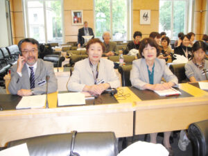 写真:本審査を傍聴する日本代表団(右が全教本田副委員長)