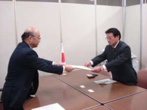 内閣府には、今谷賢二、中村尚史両中央執行委員が内閣総理大臣宛の要請書を手交し、「現場教職員をはじめ、全国の父母・国民も期待している。ぜひ、予算に組み込んでほしい」と要請しました。内閣府の担当者は、「本日から復活折衝が行われる。要請書とともに、趣旨については担当である玄葉大臣にも伝える」と述べました。