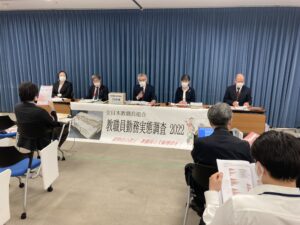 全教は、3月15日13時半より、全教「教職員勤務実態調査2022」最終報告の記者発表を文科省記者クラブにおいて行いました。全教常任弁護団からも代表の加藤健次弁護士と事務局長の齋藤園生弁護士が参加し意見を述べました。