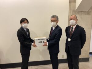 あわせて、記者発表後に文科省に「長時間労働解消のため、給特法の改正と教職員の大幅増員を求める」職場・団体決議1518筆を提出しました。