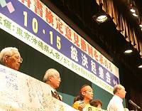 写真:県民大会の要請団は、高校生が「教科書に真実を」「嘘はかかないで」などと書いた寄せ書きを手に決意を述べた 教科書検定意見撤回を求める10・15総決起集会を開催!教科書検定意見の撤回をもとめ、10月…