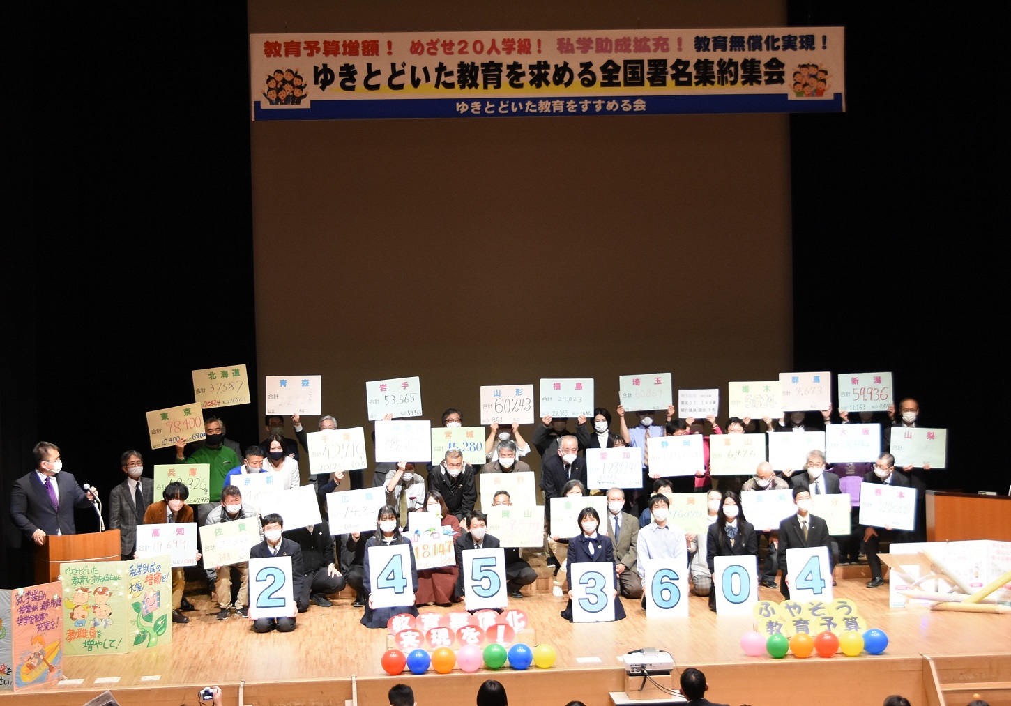 「ゆきとどいた教育をすすめる会」は12月9日、東京都内で、2022年度教育全国署名集約集会を開催しました。「教育予算を大幅に増やして、20人学級を展望した少人数学級の前進、教育無償化を実現させよう」…