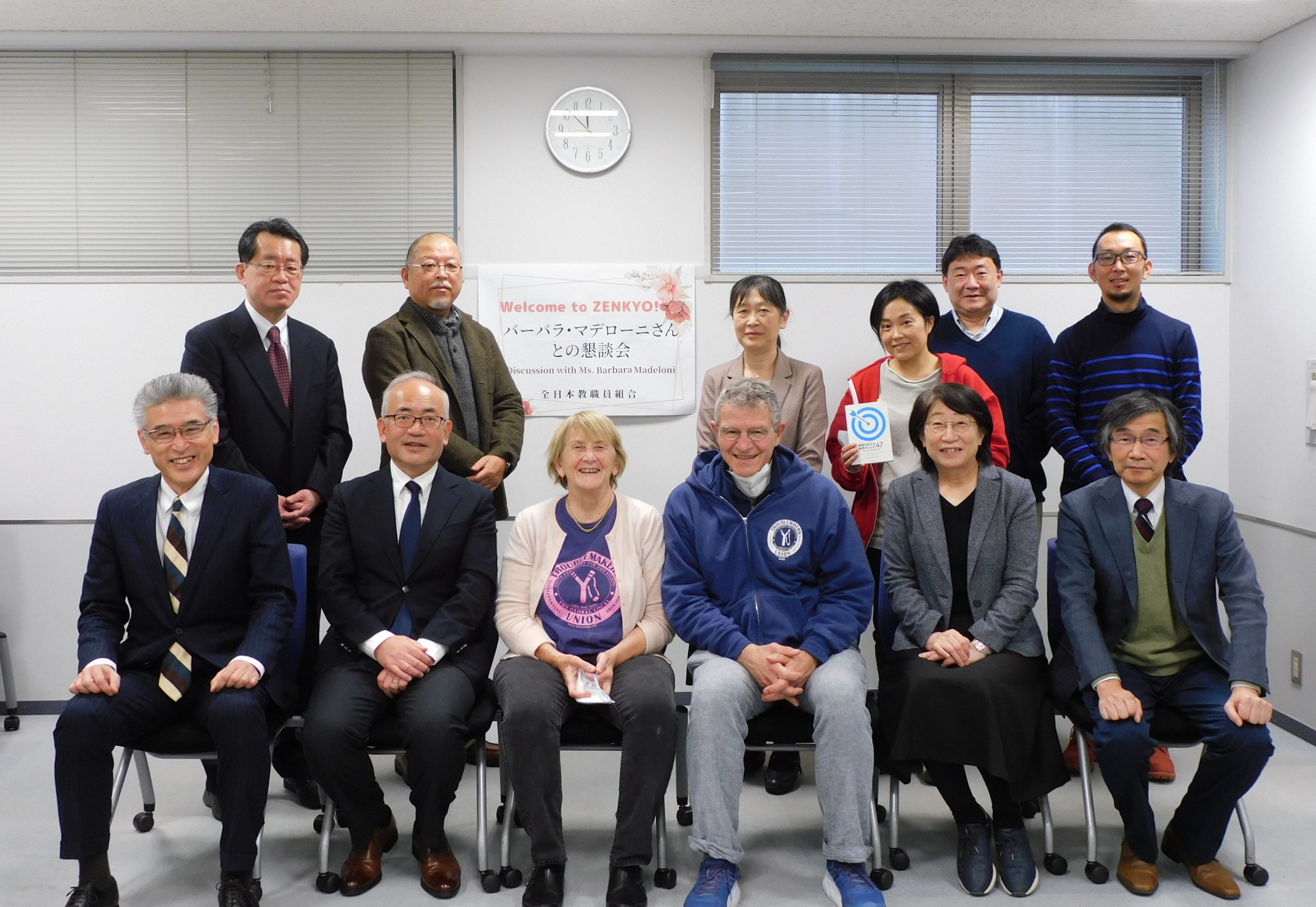 全教は、12月23日、国際交流の一環として、来日中のバーバラ・マデローニさん(前マサチューセッツ教員組合-MTA委員長、現在レイバーノーツの運営スタッフ)と懇談し、日米の教育をめぐる課題や教職員組合…