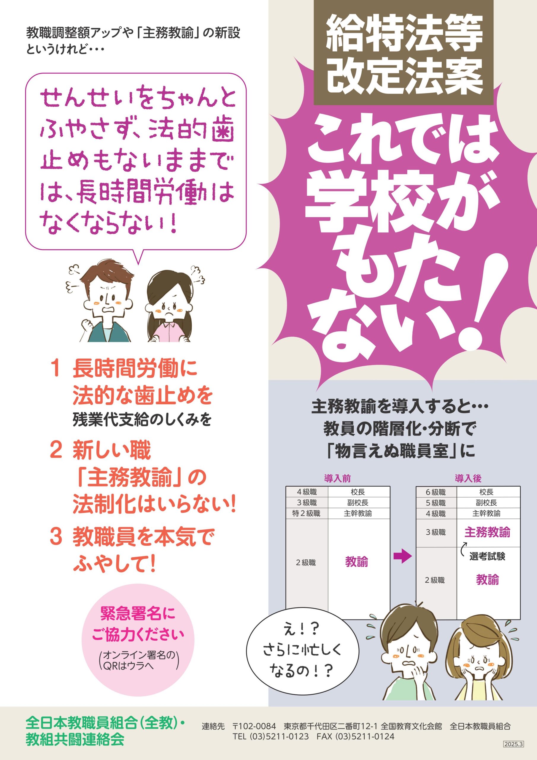 「これでは学校がもたない!給特法等改定法案に反対します!」#4.16定時アクション #せんせいふやそう #これでは学校がもたない◆実施日: 4月16日(水) ◆内 容 2025年4月16日に第3回全国…