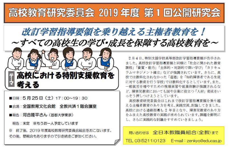 改訂学習指導要領を乗り越える主権者教育を!~すべての高校生の学び・成長を保障する高校教育を~ ■日時:5月25日(土)17:00~19:30 ■会場:全国教育文化会館 1階全教共済会議室 ■報告:河合…