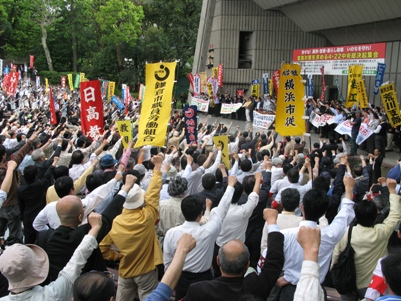 ■ 派遣切り・非正規切りとたたかう80人を超える派遣労働者も参加! 政府による国民生活を改善させるための対策や労働者・国民の最低生活保障の拡充、公務における賃金改善などを求め、4月22日、「許すな!雇…